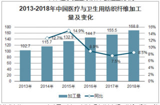 2013-2018年中國醫療與衛生用紡織纖維加工量及變化