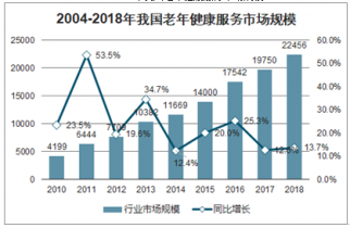 盡管中國老年健康服務目前仍處于初始發展階段,但近年來國家出臺了一些扶持政策,市場空間逐漸打開。2010年,我國老年健康服務市場規模為4199億元,2018年發展到22456億元,2004-2018年,年均復合增長率達到23%。