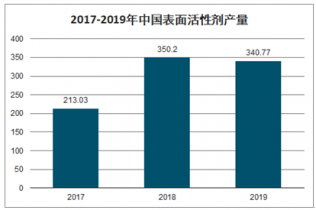 2017-2019年中國表面活性劑產量