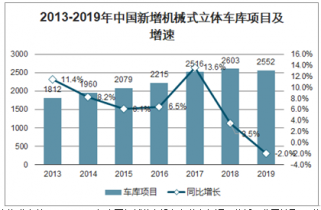 2013-2019年中國新增機械式立體車庫項目及增速