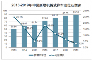 車位方面,隨著我國機械式立體車庫項目的持續推進,近年來,我國新增立體車庫泊車位數量持續增長,2019年,我國新增機械式停車泊位89.35萬個,同比增長3.2%。