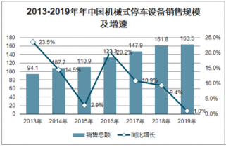2013年以來,我國機械式停車設備銷售規模持續提升,但整體增速震蕩下行,2019年,我國機械式停車設備銷售規模為163.5億元,同比增長1.0%。