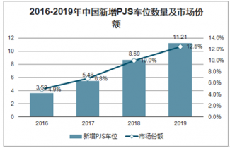2016-2019年中國新增PJS車位數量及市場份額