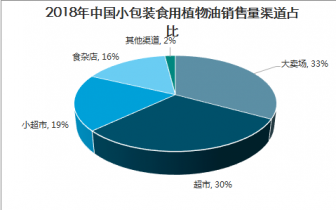 從銷售渠道來看,其中大賣場、超市、小超仍是我國小包裝食用植物油三大主要銷售渠道,2018年大賣場食用油銷量占比33%,超市銷量占比30%,小超占比19%,此外食雜店銷量占比近年來有所上升,2018年達16%。
