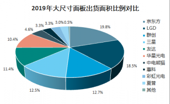 中國大陸成為全球新增高世代產能集中地。國內面板大廠近兩年重點投入高世代線,以京東方、TCL等陸廠從2003年開始投資面板行業,通過大膽的逆周期投資及積極的研發投入,在規模和經營效率上開始超越除三星以外幾乎所有日韓和臺灣地區對手。目前大陸廠商在高世代線領域已占據有利地位。大陸面板廠商擁有的8.X代線數已經位居全球前列,未來投資興建的10+代線也以大陸廠商為主,領先于其他地區廠商。2018Q4中國大陸的LCD產能面積達到了2365萬平方米,超越韓國成為全球第一。2019年LCD面板出貨面積京東方共計出貨大尺寸液晶面板4086萬平米,同比增長20.0%,首次超過LGD成為全球出貨面積最大的大尺寸液晶面板供應商;華星光電的出貨面積也從2018年的1770萬平米增加到2019年的2150萬平米,同比增長21.4%。其他陸廠如中電熊貓,惠科和彩虹光電的出貨增長率也獲得了很大增長。中國大陸廠商的全球市占率達到42.3%,成為全球最大的面板制造基地,預計2020年中國大陸LCD面板市占率將達到50%。