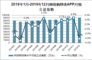 2019年1月-2019年12月網絡購物類APP月獨立設備數