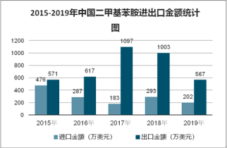第六章2015-2019年中國二甲基苯胺進出口數據監測分析