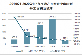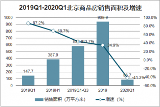 2019Q1-2020Q1北京商品房銷售面積及增速
