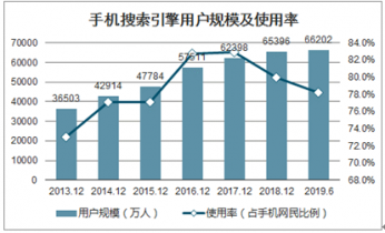 截至2019年6月,手機(jī)端搜索引擎用戶規(guī)模達(dá)6.62億,占手機(jī)網(wǎng)民的78.2%,較2018年底下降1.8個(gè)百分點(diǎn)。
