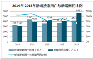 2014年-2018年新增搜索用戶與新增網(wǎng)民比例
