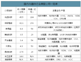 國內光器件行業典型公司一覽表