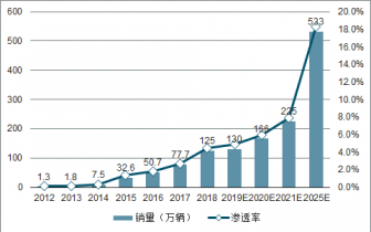 2012-2025年國內(nèi)新能源汽車銷量及預(yù)測(萬輛)