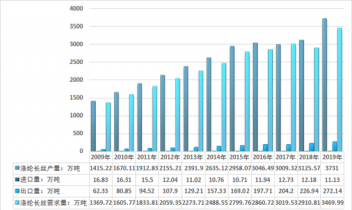 年份 | 滌綸長絲產(chǎn)量:萬噸 | 滌綸長絲需求量:萬噸 | 進(jìn)口量:萬噸 | 出口量:萬噸 |