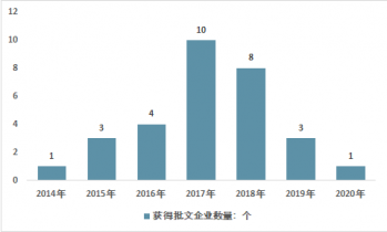 2014-2020年4月國內(nèi)獲得國家藥品監(jiān)督局生產(chǎn)批文企業(yè)新增數(shù)量 |