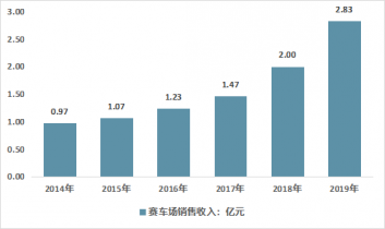 2014年我國賽車場銷售收入0.97億元,到2019年達到了2.83億元,近幾年國內(nèi)賽車場銷售收入情況如下圖所示: