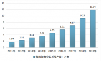 據(jù)統(tǒng)計(jì)2011年我國(guó)視頻會(huì)議系統(tǒng)產(chǎn)量為1.77萬(wàn)套,到2019年我國(guó)視頻會(huì)議系統(tǒng)產(chǎn)量增長(zhǎng)至11.94萬(wàn)套,2011年以來(lái)我國(guó)視頻會(huì)議系統(tǒng)產(chǎn)量復(fù)合增長(zhǎng)率為23.63%。