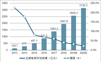 2013-2020年中國生鮮電商市場市場規模統計及增長預測