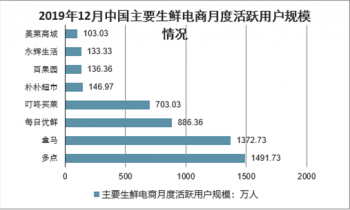 2019年12月中國主要生鮮電商月度活躍用戶規模情況