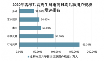 2020年春節后兩周生鮮電商日均活躍用戶規模增速排名
