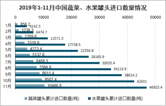 2019年1-11月中國蔬菜、水果罐頭進口數量情況