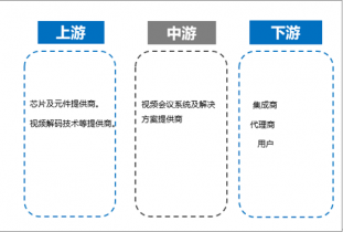從視頻會(huì)議的產(chǎn)業(yè)鏈來(lái)看,視頻會(huì)議產(chǎn)業(yè)鏈的上游主要為芯片及元件提供商和視頻解碼技術(shù)等提供商,產(chǎn)業(yè)鏈中游主要為視頻會(huì)議系統(tǒng)及解決方案的提供商,下游為集成商、代理商以及視頻會(huì)議的用戶。