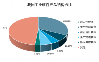 我國工業(yè)軟件通常包括生產(chǎn)管理軟件、研發(fā)設計軟件、生產(chǎn)控制軟件、協(xié)同集成軟件及工業(yè)裝備嵌入式軟件。受益于嵌入式系統(tǒng)在智能化轉型中得以最大規(guī)模應用,我國嵌入式軟件在工業(yè)軟件領域中占比最高,達到63%。