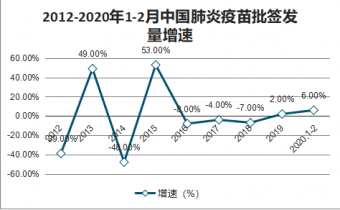 2012-2020年1-2月中國肺炎疫苗批簽發(fā)量增速