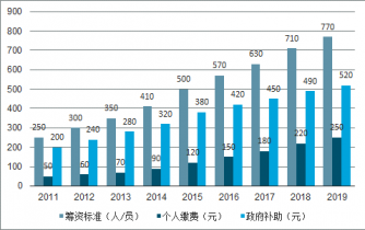 2011-2019年新農(nóng)合(城鄉(xiāng)居民)基本醫(yī)療保險(xiǎn)的人均籌資構(gòu)成