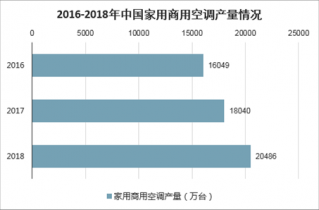 2016-2018年中國(guó)家用商用空調(diào)產(chǎn)量情況
