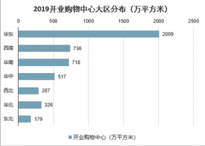 2019開業(yè)購(gòu)物中心大區(qū)分布(萬平方米)