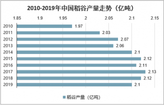 2010-2019年中國稻谷產量走勢(億噸)