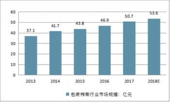 2013-2018年中國包裝榨菜行業市場規模走勢