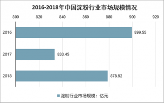 2018年我國淀粉行業(yè)市場規(guī)模約878.92億元,同比2017年的833.45億元增長了5.46%,近幾年我國淀粉行業(yè)市場規(guī)模情況如下圖所示:
