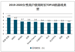 2019-2020女性用戶使用時長TOP10的游戲類型