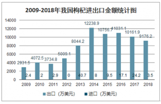 2009-2018年我國枸杞進(jìn)出口金額統(tǒng)計(jì)圖