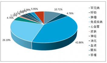 上市抗體藥物不同疾病領(lǐng)域分布(%)