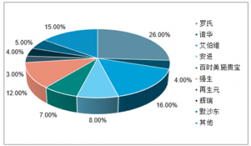 抗體藥物企業(yè)競(jìng)爭(zhēng)格局(占比:%)