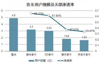 音樂用戶規模及頭部滲透率