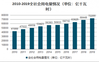 2010-2019全社會用電量情況(單位:億千瓦時)