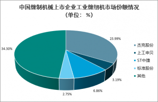 中國縫制機械上市企業工業縫紉機市場份額情況(單位: %)