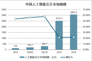 芯片是人工智能領(lǐng)域不可或缺的成分。隨著AI使用的廣泛使用,帶動AI芯片常常的蓬勃發(fā)展。數(shù)據(jù)顯示,2019年-2021年,中國AI芯片市場規(guī)模為124億元\193.7億元\305.7億元,分別同比增長53.6%\56.21%\57.82%,年復(fù)合增長率為57.01%。