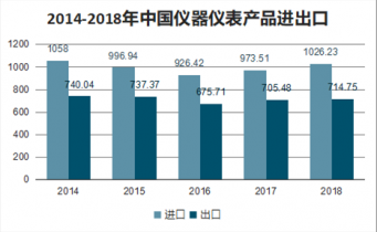 2014-2018年中國儀器儀表產品進出口(億美元)