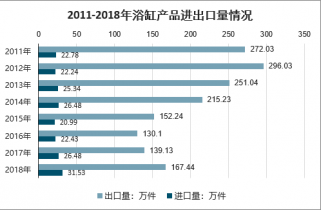 2011-2018年浴缸產(chǎn)品進出口量情況