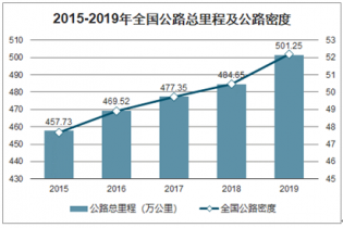 2015-2019年全國公路總里程及公路密度