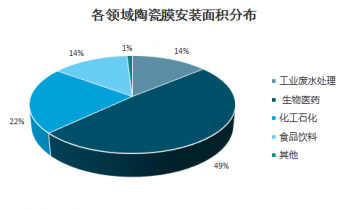 以陶瓷膜為核心的膜分離技術在過程分離領域中較為成熟的應用行業主要包括生物與醫藥、化工、食品飲料等行業,其中生物與醫藥、化工行業的應用規模相對較大。