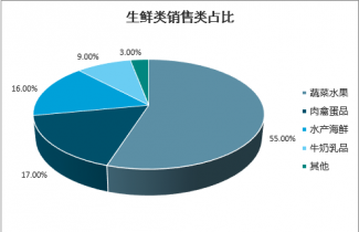 生鮮是指未經烹調、制作等深加工過程,只做必要保鮮和簡單整理上架而出售的初級產品,以及面包、熟食等現場加工品類的商品的統稱。生鮮商品有保質期短的特點,因而需要保鮮、冷藏、冷凍,同時在消費習慣上有很大的關聯性。目前生鮮商品主要有水果、蔬菜、肉品、水產、干貨及日配、熟食和糕點。在日常的生鮮產品消費中,水果蔬菜占了半壁江山。