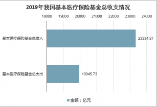 2019年我國(guó)基本醫(yī)療保險(xiǎn)基金總收入為23334.87億元,基本醫(yī)療保險(xiǎn)基金總支出為19945.73億元,年末累計(jì)結(jié)存26912.11億元。