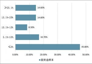 中國百貨商業(yè)協(xié)會發(fā)布的《中國百貨行業(yè)發(fā)展報告(2016-2017)》提到,在保證行業(yè)典型代表性的基礎上,根據(jù)其部分(85家)會員單位的銷售數(shù)據(jù)統(tǒng)計得出,有76.6%的受訪百貨已經(jīng)實行了自采自營模式,然而在具體的自采自營比例方面出現(xiàn)了分化,只有14.6%受訪企業(yè)的自采自營比例超過了20%,近半數(shù)(45.8%)受訪企業(yè)的自采自營比例都不足5%,這充分說明我國傳統(tǒng)百貨目前自采自營程度還相對較低。自采自營形式方面,采取買斷某一品牌或品類、區(qū)域代理或總代理和擁有自有品牌等三種自營方式的企業(yè)數(shù)量大致相當。自采自營品類方面,涉及企業(yè)采取自采自營方式的商品品類主要集中在服裝鞋帽、化妝品和食品三類。