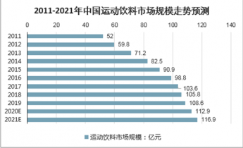 2019年中國(guó)運(yùn)動(dòng)飲料市場(chǎng)規(guī)模將達(dá)到108.6億元,于2021年將漲至116.9億元,雖市場(chǎng)規(guī)模小于能量飲料,但是也持續(xù)保持增長(zhǎng)趨勢(shì)。可知,2021年,中國(guó)運(yùn)動(dòng)飲料的市場(chǎng)規(guī)模將至少有116.9億元,發(fā)展極具潛力。