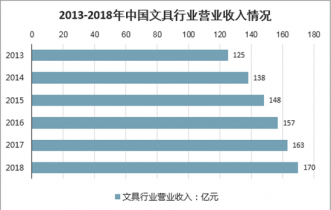 2013-2018年中國文具行業營業收入情況